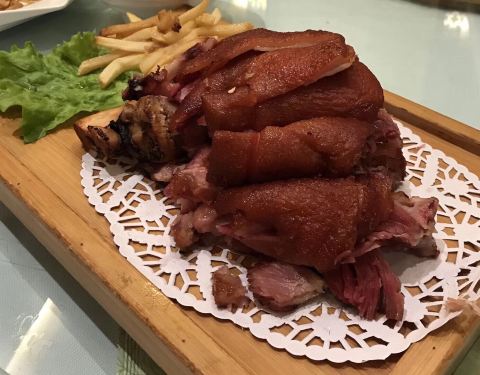- 咸猪蹄味道不错,烤牛肉份量十足,味道大赞,海鲜大拼盆量不少,味道一般,总体来说,味道都还不错,...