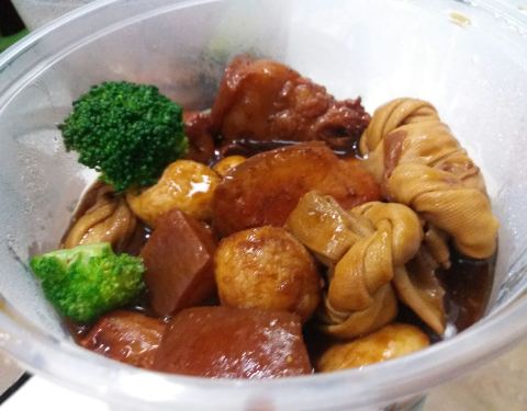 看上去像是办宴席的地方,菜式也比较中规中矩,因此平常吃饭不太会去。不过网上叫外卖的时候发现套餐还不错,就叫了一次,小碗的菜分量也挺可以,味道也还不错。可以作为午餐的选择之一呢。外婆红烧肉里边有豆皮...