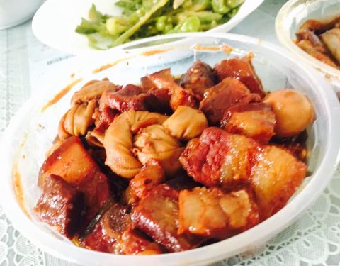 一直没吃过这家老牌本帮菜饭店 今天看到外卖搞活动就点了几个菜吃吃 很快就送来了包装干净整洁 外婆红烧肉里面有百叶结和鹌鹑蛋 肉有点油腻百叶结和鹌鹑蛋很入味 长沙小炒肉很下饭就是太油了 荠菜炒年糕是我爱吃的肉丝美味