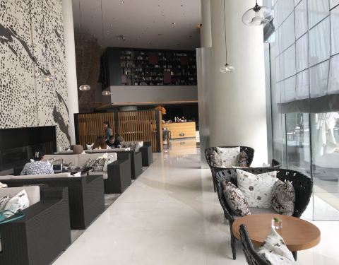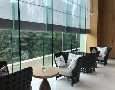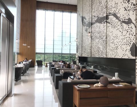 [爱心]下午茶☕️使我快乐[耶] ✨君悦酒店的大堂酒廊在酒店2层; ✨座位区大致分为三个不同的区域; ✨[玫瑰]大堂中心区,靠近水池景观,大都是木质桌椅; [玫瑰]窗边景观区,座位大都是休闲藤椅,可以看到星海广...