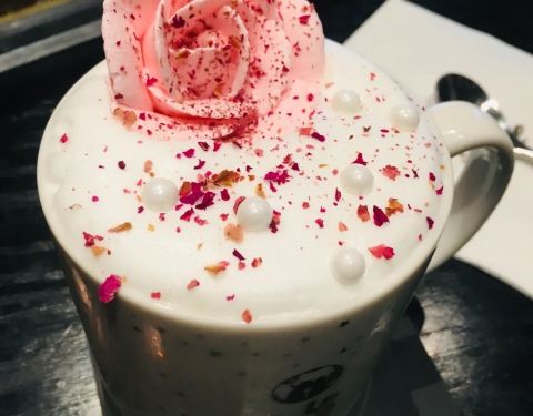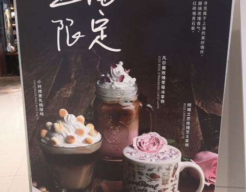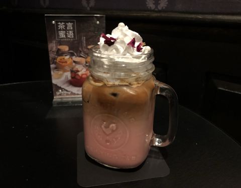 stayReal Cafe长宁来福士店 这家咖啡店其实是服装品牌stayReal的延伸, 进门口感觉有些美式乡村风格, 在收藏夹里放了很久, 是因为朋友推荐了她家的倾城之恋玫瑰芝士拿铁, 于是在附近吃完午餐, 来拔草这款颜值超级高的倾城之恋玫瑰芝士拿铁, 果然, 美貌出众, 粉色的玫瑰花让老夫的少女心爆棚, 美美的舍不得下口, 忍不住拍拍拍, 其实真的喝一口, 口感也是一般, 好在不算甜腻, 可以接受。