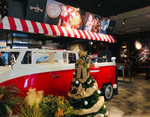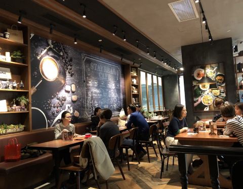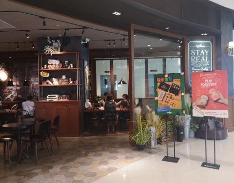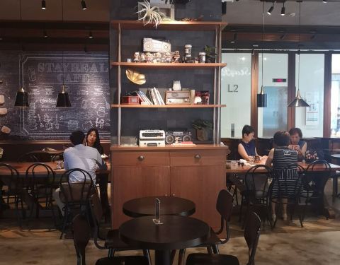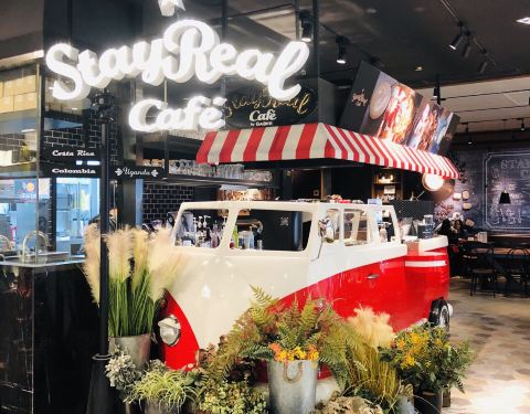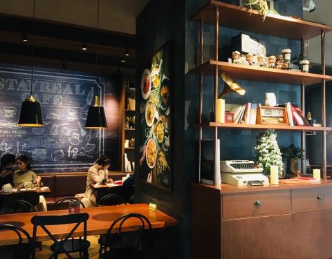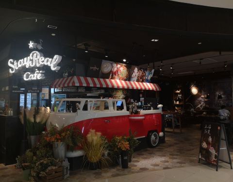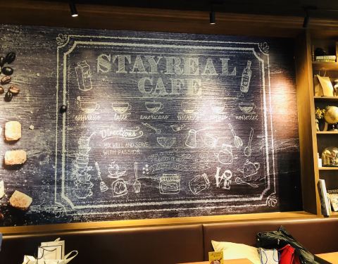 五迷打卡之地,就在stay real卖衣服的旁边,还是蛮好找的,在门口点单之后会给牌子,东西好了之后会送过来,环境还可以,有各种stay real周边,循环放着五月天的歌。 点杯上海限定的拿铁,颜值挺高的,口味太甜,可能加了草莓牛奶的缘故吧,可以在这里坐着听听歌,不过环境挺吵杂的,午市有套餐还可以选择一下。性价比不高。