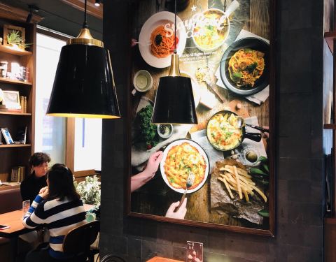 对于各种粉来说,五月天阿信的颜值就够撑起这家咖啡馆了吧,更何况这家咖啡馆本身的样子和它出品的食物饮品颜值也是相当在线的。 和朋友附近相约都想来这家坐坐,大概因为都是周末的缘故,竟然几次都是一座难求的,可知有多火。 拿铁有不少创意品,我还是喜欢中规中矩的,松饼没什么特别,有点甜腻。对我来说都是觉得太过花哨。其实整个咖啡馆都是给我这样的感觉。其实感觉都找不到真正的个性在哪里。