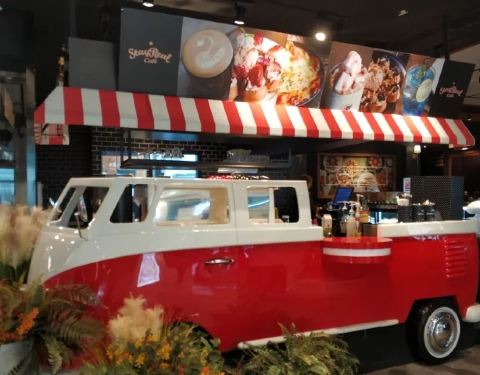 看到这家店的时候,已经在喜茶买单等单中了。 真是恨啊! 大大的广告牌上,高颜值的饮品吸引了我和同事的注意力。 其实种草很久了就是没想起来,看到的时候才想到自己没拔过草。 开放式的环境让人觉得很舒服,红红的小汽车让我想到了浪漫的法国,朋友还强烈要求要在那里留影。 只能呆着遗憾下次来拔草咯!