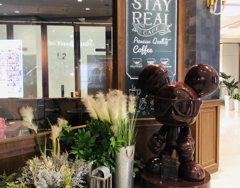 五迷打卡之地,就在stay real卖衣服的旁边,还是蛮好找的,在门口点单之后会给牌子,东西好了之后会送过来,环境还可以,有各种stay real周边,循环放着五月天的歌。 点杯上海限定的拿铁,颜值挺高的,口味太甜,...