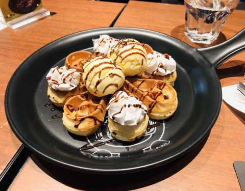 无论吃的多饱,饭后甜品总是不能少,更何况今天吃饭地方不适合饭后聊天,所以必须找个舒适的地方坐下。松饼是这里的特色,环境也是。我们晚饭吃太饱了实在不能一人一个,所以就share一下最豪华的这个。爱吃奶油的...