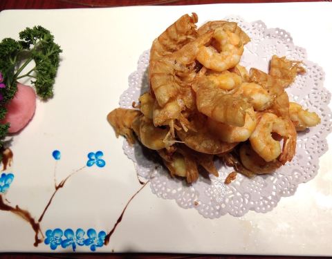 听闻爷爷家宴的家常菜不错,这就种草了[种草][种草],约三五好友来[拔草][拔草] 位置在延吉路人才交流中心斜对面,楼下是家家悦超市,停车️有些困难,周边收费停车场,建议公共交通 一进门有一间很大的房间,目测三十位能坐下,适合家族人多的聚会,好热闹。服务员小女生服务很周到热情,会把你带到房间,然后倒茶等。 金牌脆皮虾,这个店的主打产品,68元一份,很大一只,把壳和肉分离开但还连在一起下锅的,出品后很好看,虾肉嫩壳酥脆,好像大多抢虾壳吃了,放凉后依然很酥脆,五星推荐 海鲜春卷,48元一份,外皮炸的酥脆,蛋卷里面夹着蟹棒,粉丝,和菜,要一口吃掉,才能吃出感觉,所有味道融合在一起,而且不掉馅[偷笑][偷笑] 螃蟹面鱼,真实名字不知道,虽然是主菜,我反而喜欢里面的面鱼,筋道好吃,充分吸收了螃蟹的新鲜汤汁,更是点睛之笔。