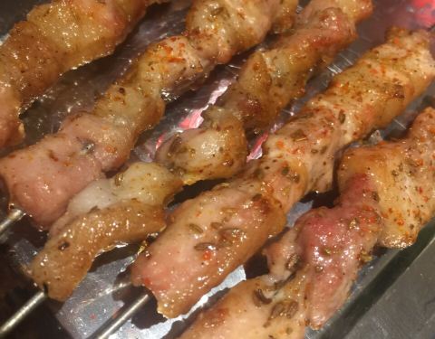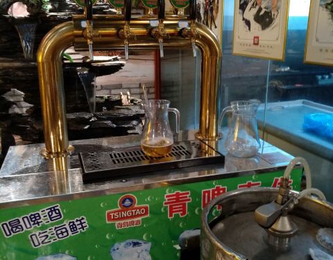[位置]听说不好停车,坐公交320人力资源市场站,挨着家家悦就在路边上,有个小二楼直梯。 [环境]烧烤单晚八点后可用,十点左右过去的,有几桌一起等着看世界杯,还不错。 [服务]前台本来给安排最旁边的位置,点菜姐姐蛮好的,给我们换到靠前一点能看大屏幕。 [菜品]大啤酒杯一杯正好装一瓶二厂青啤,烤牛肉串还不错,排骨串有点腥,烤肠不好不坏,凉菜黄瓜切的有薄有厚,烤韭菜讲真非常老,烤茄子实话还不错,最后这一个大碗有点像大盆的蛋炒饭,分量真不少,不过应该只有米饭鸡蛋和盐炒了一遍,清淡的很……