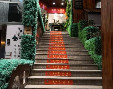 - 来这里聚餐的人也是挺多的。这家店的前身是瑶瑶火锅。比之前的装修更加典雅了,晚上看上去灯火通明的感觉