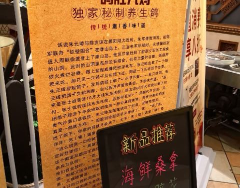 这家店的前身是瑶瑶火锅。比之前的装修更加典雅了,晚上看上去灯火通明的感觉。来这里聚餐的人也是挺多的。包间挺多的,店里有好多特色菜。盐焗大排,桂花糯米藕,还有烤五花肉,等等,都是挺不错的!