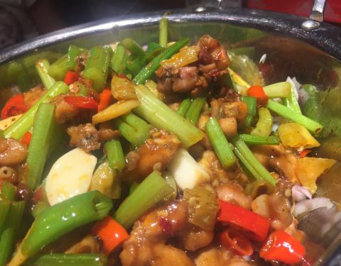 味道还不错,过于咸,但是菜量太少!干锅牛蛙里面全都是芹菜和洋葱,牛蛙非常少!烤肉味道还不错,性价比比炒菜高,环境还不错,地方比较大。