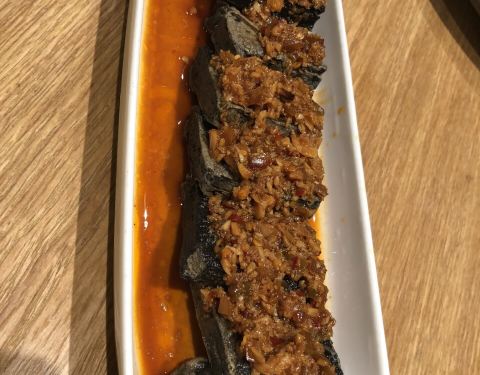 雁舍apm店生意非常好,有两个包间,不收包间费,也没有最低消费。虽然以前也来过,这次有了新认识,印象好多了,感觉菜都不是很辣了。臭鳜鱼肥美肉厚,臭豆腐也好吃;有道小吃糯米发糕特别好吃,30元一份,6个。