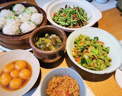 好吃的鸭子肉比较不是那么方便吃起来,素菜还不错,整体感觉为了适应大家而把菜品的重口味都做了调整...