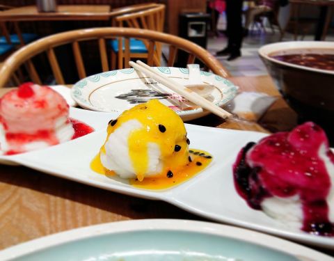 崂山金鼎利群六楼,有五六年没去过了,竟然金鼎也开了分店,服务提高好多,处处跟得上,还很贴心哦! 跟着吃的霸王餐,鲅鱼丸子汤,丸子鱼肉细腻,很弹哦 蓝莓山药,色彩搭配好好看,红色草莓口味,黄色百香果的,酸甜是最好吃的一个[害羞]深色是蓝莓口味儿 干锅有机菜花,大厅点餐小姑娘很贴心,问有没有忌口,说不吃辣,特意下单时候干锅不要辣,火候不大,保持有机菜花的脆,口感好 八宝粥 ,两碗,大枣很大一颗,粥糯香稠 余外点了两个菜[偷笑]一个双人桌还放不下,尴尬的,好能吃腻[害羞][害羞] 糖醋里脊,孩子就喜欢这口,吃肉肉,不那么甜我还很喜欢吃,小肉肉都很嫩。 肉丝凉皮,商场里面热,特别想吃点凉的