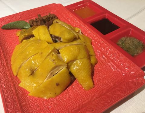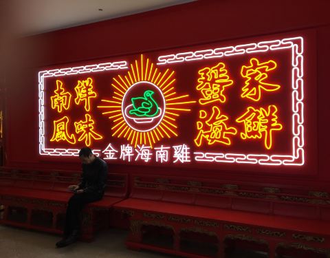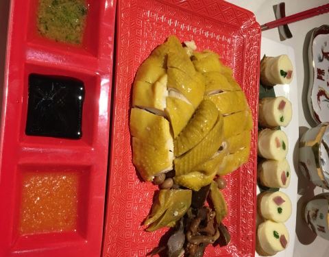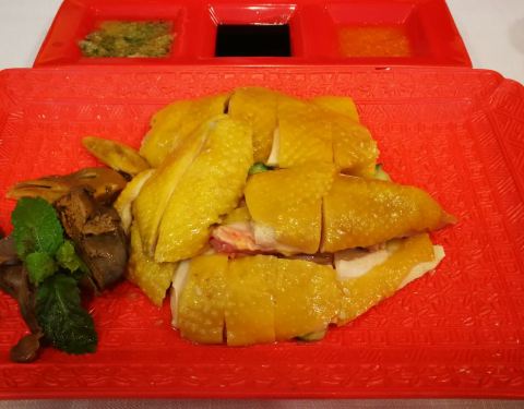 - 招牌海南鸡真的很好吃,286元一只。红得发光的店面,价格不便宜。大良锅贴奶,比较有特色,趁热吃