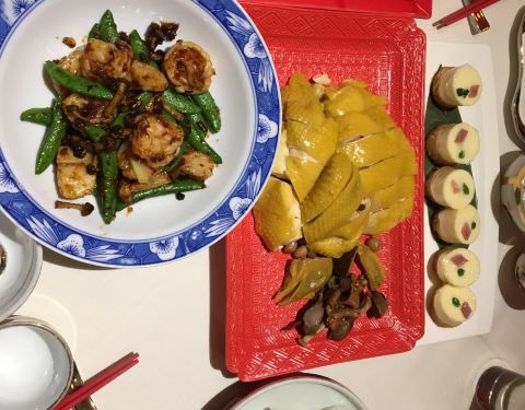 来这里肯定好吃海南鸡了,不错。带子虾球两比较足,新鲜有嚼头, 拆鱼羹也有蛮大一碗,不过个人感觉有点腥。中午1点来的,人不少,等了一会,如果坐大堂环境就没那么好了。