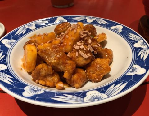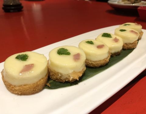 海云陈记 主打的是粤菜 餐厅以喜庆红为主 装饰风格凸显华南一带特色 饭点时间排队人不多 招牌菜金牌海南鸡 除了比较嫩之外 似乎没有什么特色 咸蛋黄虾球和鱼皮 虾球还挺大 裹一层咸蛋黄口感还不错 鱼皮更像是零食 山楂凤梨咕咾肉 通俗点就是菠萝咕咾肉 味道也无异 无非是多撒了点碎山楂片 另外盘子也没有擦干净 挺粗糙的 大良窝贴奶 下面是面包 托着鲜奶?忘了 黑荔枝饮料倒是还不错 算是最满意的了 龙角豆本身无味 配一点咸酱 脆硬口感 飘香油鸡饭 没有亮点 性价比比较低 总体一般般吧