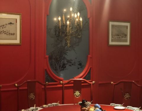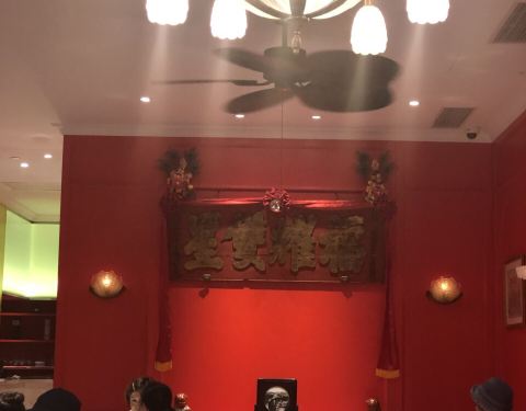 这家第一次来吃,预约到半封闭式的包厢,低消2000~能坐10人~跟大厅融入一体,刚开始吃饭特别热,后来好很多 观光电梯直达6楼 在戴森这条路上 直走就是啦~ 红色的大牌匾很容易辨认~里面也特别喜庆,港味十足~装...