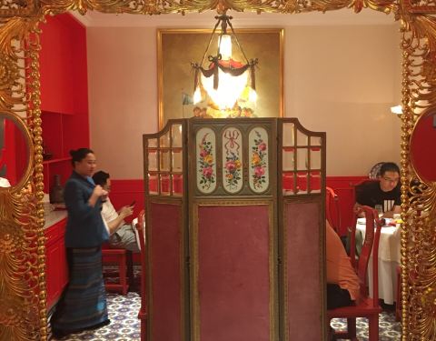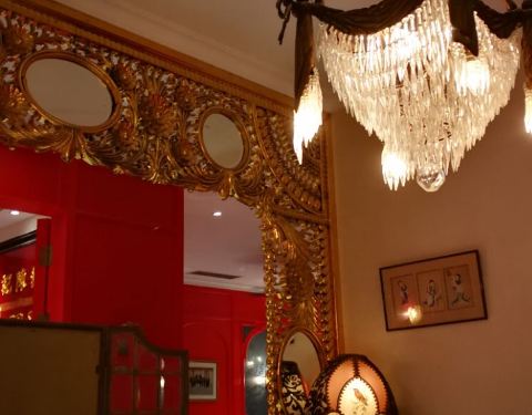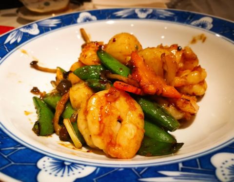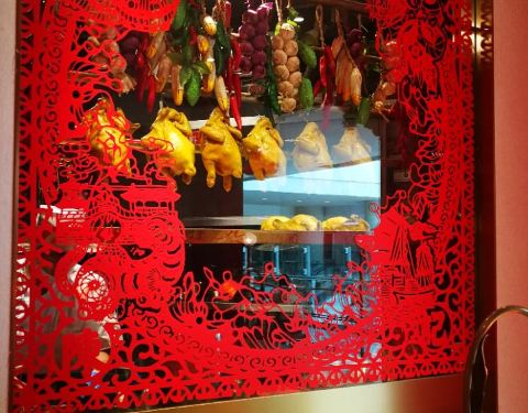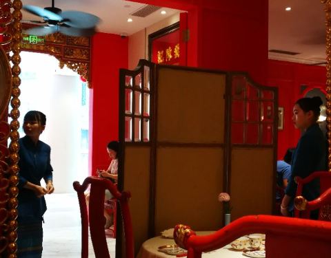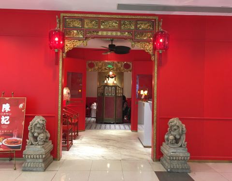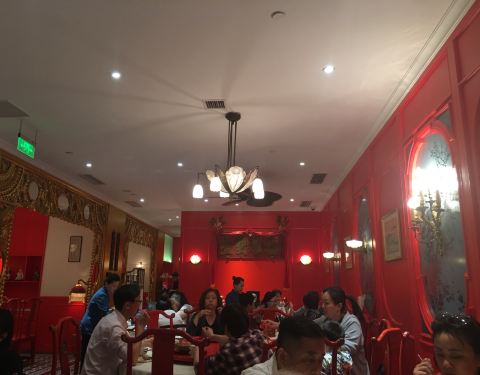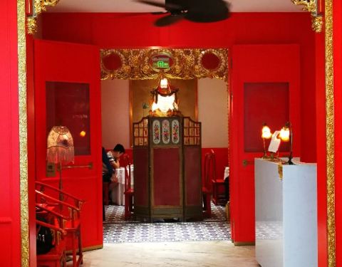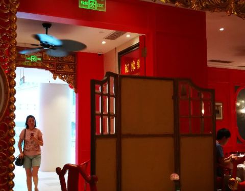 从墙面装饰到桌椅、餐具,都以金色和红色为主,凸显大气富贵和复古怀旧的氛围,烛台、灯笼、凤求凰等元素更是中国风十足。主打南洋粤菜风味,以海鲜炒菜为主,特色海南鸡、飘香鸡油饭、蜑家拆鱼羹等味道都很棒。