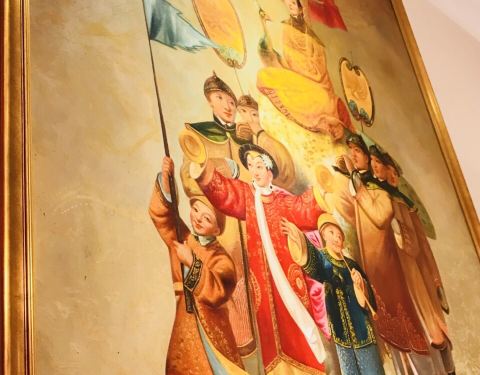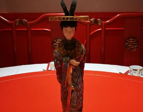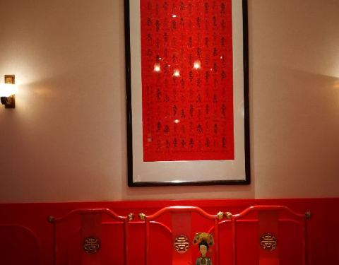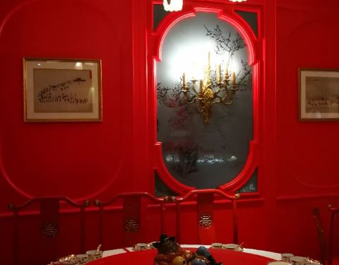 从墙面装饰到桌椅、餐具,都以金色和红色为主,凸显大气富贵和复古怀旧的氛围,烛台、灯笼、凤求凰等元素更…