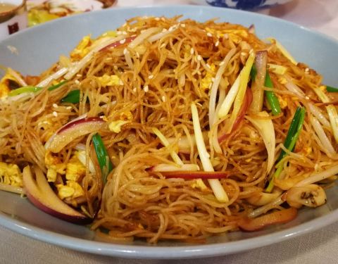 一个人单独又来了两次,来得早就可以坐到里面去,其实里面空间也不大,有几个半开放的包厢,加上个厅堂,典型的南洋装饰摆件,包括带有印度教色彩的神佛。仅仅试了主食和甜品,豉油黄炒面吃口不错,稍偏干,比星洲炒米粉好,配上木瓜咖啡软糕,非常爽口;另一次尝试的则是鱼汤米线,平时绝少点这个,这次端上来入口却觉得不虚此行,口味浓郁,配的甜品娘惹加椰糕点则相对不如木瓜咖啡软糕。看样子这家只能一个人偶尔来简单吃吃,价格尚可勉强接受,点菜点酒水的话则价格明显偏高了,虽然服务还是不错的,开票则稍慢