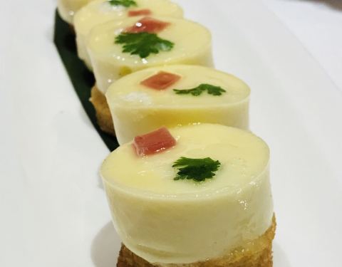 - ...也不少,可惜盘子都一样 冷菜最喜欢那个大良窝贴奶,炸鲜奶和下面油酥酥的东东 海南鸡三种酱都好吃