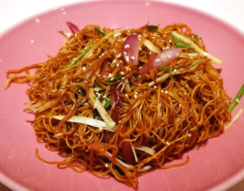 一个人单独又来了两次,来得早就可以坐到里面去,其实里面空间也不大,有几个半开放的包厢,加上个厅堂,典型的南洋装饰摆件,包括带有印度教色彩的神佛。仅仅试了主食和甜品,豉油黄炒面吃口不错,稍偏干,比星...