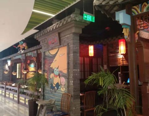 - 立马被桌上的牛蛙吸引,好好吃的样子。 店里空间很狭小,有点吵,装修风格中式武侠风。服务很及时