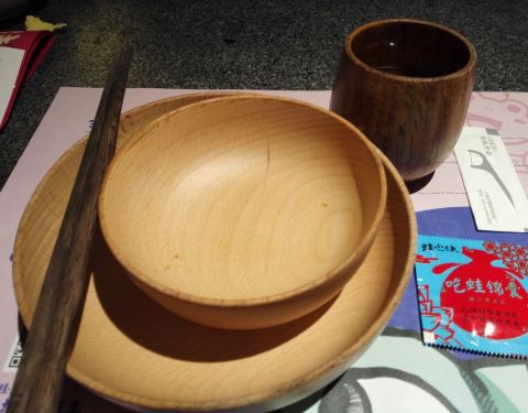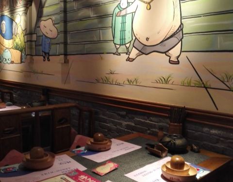 立马被桌上的牛蛙吸引,好好吃的样子。 店里空间很狭小,有点吵,装修风格中式武侠风。服务很及时