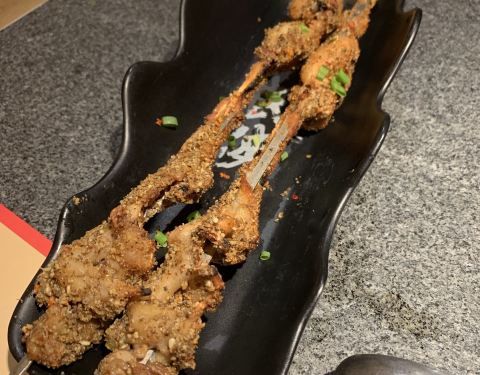 - 「烤牛蛙」比蛙锅好吃,面上撒的孜然、芝麻、花生粉真的好香。”很热情