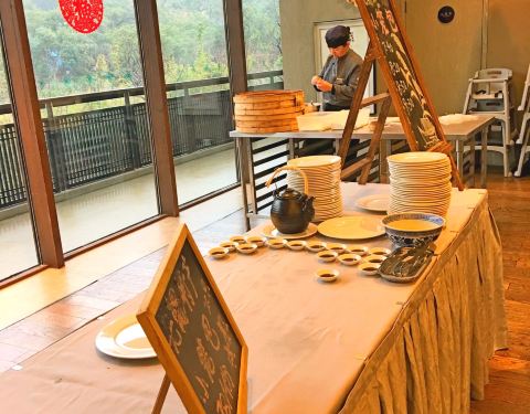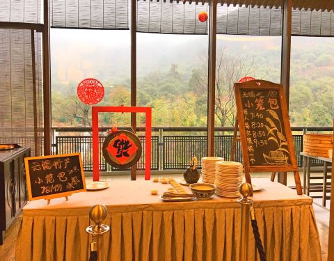 没想到工作日的早餐人还那么多,可能因为还在放寒假的缘故。 自助餐厅靠窗的位子比较好,能看到外面的小溪流,对着大自然吃饭真的太心旷神怡了! 进门就是儿童区,看到小朋友们都自给自足哈! 自助餐的选择还是很...没想到工作日的早餐人还那么多,可能因为还在放寒假的缘故。 自助餐厅靠窗的位子比较好,能看到外面的小溪流,对着大自然吃饭真的太心旷神怡了! 进门就是儿童区,看到小朋友们都自给自足哈! 自助餐的选择还是很多的,中式西式日式都有,豆花,粥必须吃哈~ 无锡小笼包需要排队拿,每人限一个,九点半最后场总算是赶上了! 饮品一般般,特别是茶很不灵,居然是茶包放在茶壶里煮自己倒,味道很淡的,难道不应该是给个茶包自己泡嘛… 味道中规中矩,达不到五星级水准,随便吃吃还行,就餐环境和服务还是不错的!