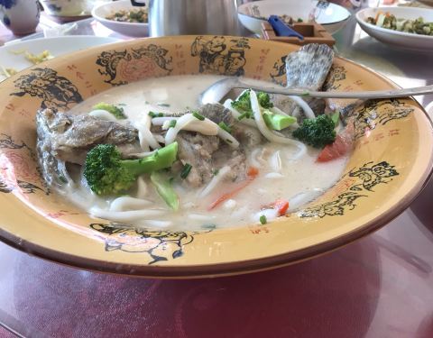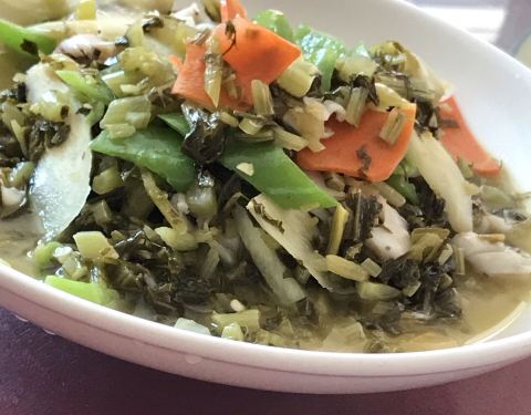 阿義土菜馆位于乐苑新村小区对面的马路门口,店门牌很大很好认。一楼散客二楼包厢,当然厕所也在二楼。这次表弟一家来绍兴玩,就选了在家门口这家招待他们一家。因为去的有些早,所以没什么人。 五个大人,两个小孩,一共点了七个菜,没点饮料共计420元。一份凉菜五香酱牛肉、一份蛋黄南瓜、一份油炸虾尾、一份咸菜鱿鱼、一份石斑鱼、一份红烧排骨和三丁小炒。 五香酱牛肉,很软入味,小孩子很喜欢。 蛋黄南瓜,应该已经炸过的,二次返工,炸的很酥,里面的南瓜很软,趁热吃味道还不错。 油炸虾尾,同样半成品,炸过重新炸了下,因为是对虾,个头有些大,但是虾线没有处理,外面一层有味,里面的虾肉没有味道。 咸菜鱿鱼,也算鱿鱼小炒吧,本人喜欢吃咸菜,所以感觉不错。 石斑鱼,最贵的应该就是它。鱼肉鲜嫩,鱼汤也美味,配料的面条和汤小朋友很喜欢。个人感觉就这样。 三丁小炒,中规中矩。 红烧排骨最后上的,分量一般,就是入味,老妈喜欢。 总体分量一般,味道还不错,就是价格偏贵。