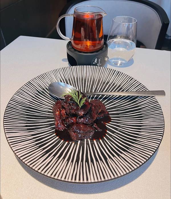 糟骨头蒸膏...这是今日份最佳,小姐姐和我说是进口参,但...关东是国外?我质疑了一下我自己的知识盲区,隐约觉得不对劲……不管是哪儿的参,还是多少头,食材倒是挺新鲜。主要是黑松露和关东参的组合,竟然还不错!