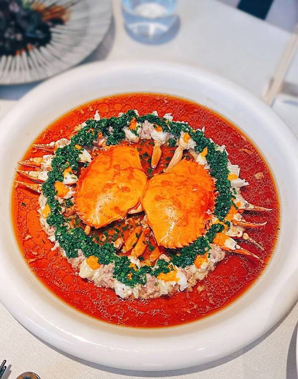 这是今日份最佳,小姐姐和我说是进口参,但...关东是国外?我质疑了一下我自己的知识盲区,隐约觉得不对劲……不管是哪儿的参,还是多少头,食材倒是挺新鲜。主要是黑松露和关东参的组合,竟然还不错! 糟骨头蒸膏蟹: 膏黄蟹肥是个功夫菜,下面的肉肥瘦相间,由于最后一道才上这个菜,说实话已经吃饱了.…… 是今日全场第二~膏是真的多,是不是这两只蟹里出来的不知道,肉倒是挺肥,最关键的是,连蟹腿都给你拆解开了,第一比较入味,蟹的鲜美融入到了下面的肉肉里,第二汤汁可以融入到蟹腿里,白花花的真诱人第三是真方便啊,筷子,就可以掏出肉来满意満(时价,如果在意价格,慎点) 鱼加拿大龙虾炒自制年糕: 小姐姐说年糕是师傅纯手工,这点我是信的,常规的年糕稍冷就会变硬。这个季节点这道菜,吃到最后年糕都还软糯糯不过我在意的是加拿大龙虾呀为什么要让年糕喧宾夺主……为了让分量看起来,足够多?味道就是中规中矩把,368一道……Emmm 我不能说不好吃,但也没多惊艳吧…… 逸道慢煮雪花牛肉: 额,说实话,略微失望,毕竟牛肉368块钱,不建议各位客官点了。