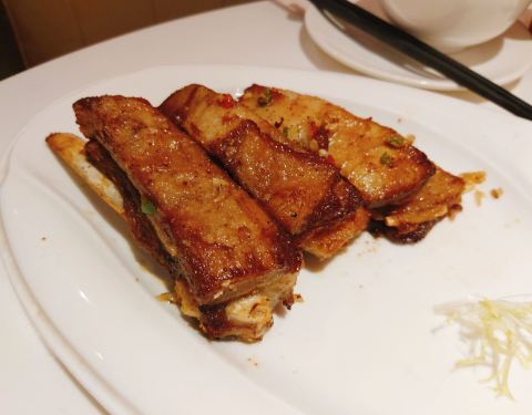 在恒基名人3楼,粤菜和点心为主,团了他家的点心套餐,性价比挺高的,里面的鲜虾虫草尤为推荐,食材的层次感不错,主食点了黑叉烧和油鸡双拼,其中叉烧口感入味,不过略显老,倒是油鸡特别香嫩,而且油而不腻,他家的港式奶茶也比较正宗,推荐点冰的。