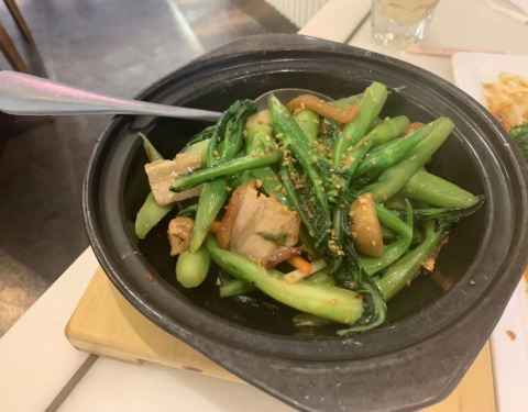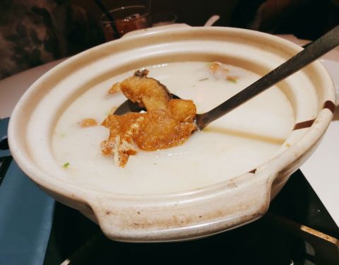 中午,晚上生意都不错,但不用排队。晚上稍微早点去,还有靠窗位~ 客家手打鱼丸煲,鱼丸吼吼吃!真的是鱼肉做的,还有刺呢!汤挺鲜美,豆腐很嫩! 黄金回味虾球,每只都好大,里面是完整的一只虾哦!Q弹! 恭喜里炒饭,料相当足!有虾仁,鱿鱼粒,菜心,香肠,蛋,叉烧(应该是叉烧吧,反正是小肉丁)。口味不错,量也很足! 肥三姑的黑叉烧,很嫩,完全不肥,入味!稀饭~有团购哟,只要29.9一份~ 感觉都好吃,没有踩雷~