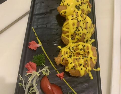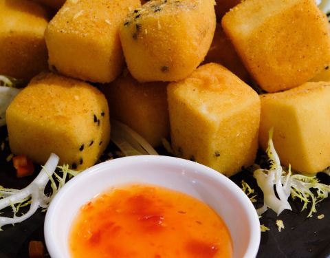- 盐焗味道很好 脆皮金砖豆腐 豆腐表皮酥脆,上头撒了黑芝麻,里面的豆腐很嫩,旁边配有泰式甜辣酱,...