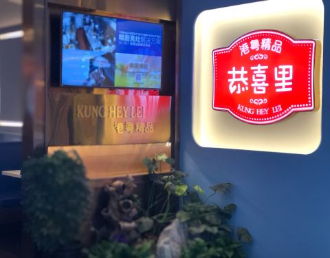 扫券系列 来福士附近和名人广场各有一家 环境比较港式,蓝白主色调 服务炒鸡炒鸡热情,全程微笑服务,最后还送果盘 客家金牌盐焗鸡 一份半个,传统客家菜,看似简单,其实很考验厨师功底,选用的是走地鸡,色泽呈金黄色,皮薄又滑爽,盐焗味道很好 脆皮金砖豆腐 豆腐表皮酥脆,上头撒了黑芝麻,里面的豆腐很嫩,旁边配有泰式甜辣酱,可选择沾一沾,创意料理是也 金银蛋肉碎浸菠菜 色彩丰富的色面,菠菜碧绿生青,内里加入皮蛋碎,高汤很喜欢,特鲜美 一品上汤虾饺皇 虾饺皇噱头较足,高汤并没什味道,无惊喜,虾饺表皮有金箔感,皮质通透,里面的虾肉鲜美,正常水平发挥 恭喜里招牌炒饭 这个炒饭不推荐,米粒过硬了,整体偏干,吃着咔喉咙