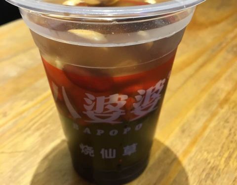 饭后来杯饮品最合适不过了,一路瞎走走,看到这家八婆婆,而且只要8元就能买到一杯,实在很便宜,选了奶茶烧仙草,满满一杯配料还真多,芋圆,红豆等等,奶茶味道也不是很甜,喝完也不会觉得腻。冲着这个价格还是可以试试的。