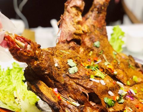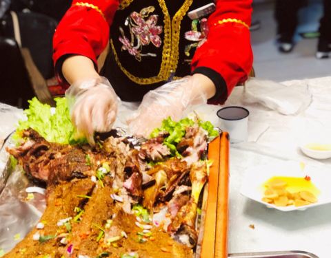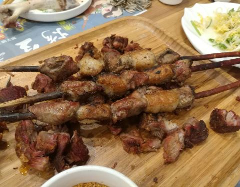 在行宫,饭点的时候不太好停车。 屋里非常宽敞,吃饭不拥挤,干净卫生。 服务积极主动,总是面带微笑,上菜非常快。 新疆风味的饭菜,羊腿烤的稍微有点干,但羊肉味道非常棒,鲜嫩。特别推荐红柳烤串,肉大,鲜嫩多汁,一块瘦一块肥,热热的吃非常香嫩多汁。烤馕烤包子做的也非常好吃。烤尖椒也很有水平。 推荐爱吃羊肉的来尝尝。