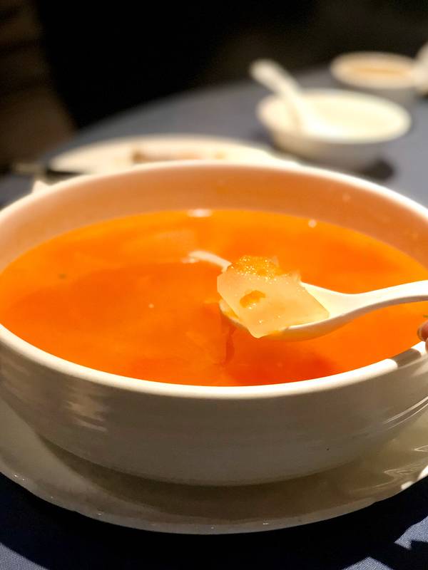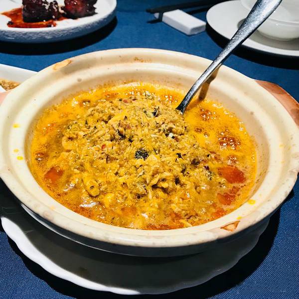 螃蟹个头不大,但肉很饱满,对半劈开能看到里面黄灿灿的蟹黄。建议先把蟹黄和蟹膏吃掉,再尝蟹肉。吃起来酒香浓郁,手上都会残留着酒香。和螃蟹一起上的还有吃螃蟹的小工具:蟹剪and蟹叉。蟹剪用来剪蟹腿,蟹叉可...螃蟹个头不大,但肉很饱满,对半劈开能看到里面黄灿灿的蟹黄。建议先把蟹黄和蟹膏吃掉,再尝蟹肉。吃起来酒香浓郁,手上都会残留着酒香。和螃蟹一起上的还有吃螃蟹的小工具:蟹剪and蟹叉。蟹剪用来剪蟹腿,蟹叉可以剔蟹肉。有了这些,三下五除二就能搞定一只螃蟹~ 10月份正是公蟹的蟹膏长得最厚实的时候,掰开就能看到满屏的蟹膏,一定要抓住吃蟹的黄金季啊。【鸡头米烩蟹粉】里的鸡头米是苏州特产,只有这个季节才能吃到,是比较健康的食材。吃起来很有嚼劲,放在蟹粉里一点都不违和,配着蟹粉喝有点像蟹肉粥。