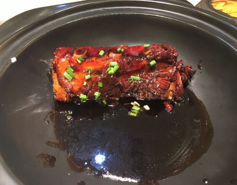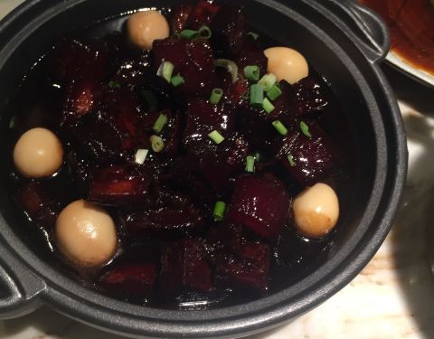 红烧肉做的颜色上显得差了一些,颜色略显深暗,感觉像是酱油生抽类的东西放多了。但是吃起来的味道还是很不错的,特别适合搭配米饭。