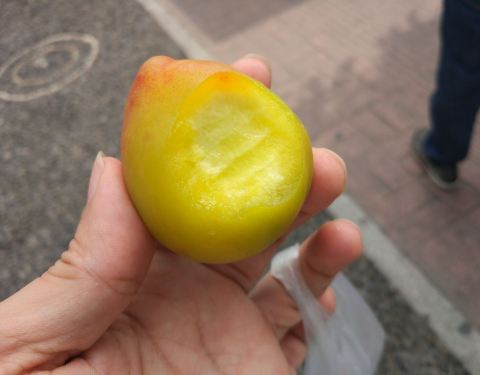 口味~一般,买了5个咸水桃,9.2元,一斤13元,还挺贵的。但是挺脆的,真不能多吃,后面越吃越不怎么样,尝尝鲜就好,只是要等车,又嘴馋就买了些。还想买菠萝的,一个太多了。 环境~还不错,水果种类也挺多的。 服务~一般的服务,支付宝微信扫码付款。