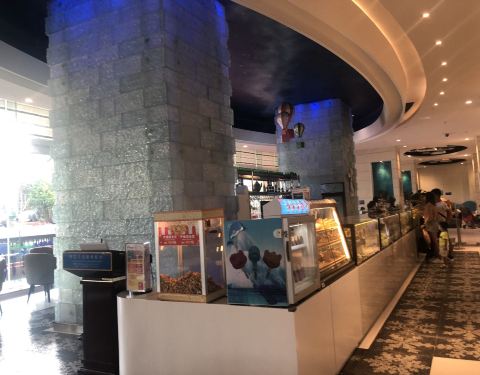 整个酒店的主题都输面向儿童的。这个甜品廊室内设有儿童娱乐区,甜品也是可爱的卡通形象供孩子们选择。坐在大的落地窗前,能看到长隆有乐趣里鲸鲨馆的高耸的大鲨鱼。玻璃窗外也是个儿童小乐园,小朋友一个小甜品...