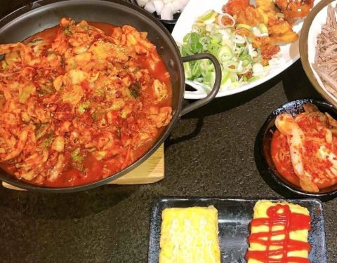 【春川鸡排锅】是熟悉的韩式甜辣味。【鸡蛋卷】一半番茄酱一半美乃滋酱,里面能拉丝,吃着很嫩