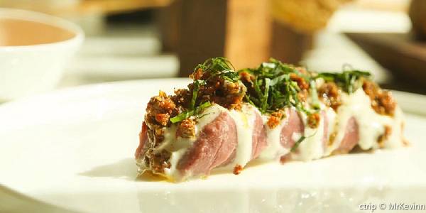 Niko Romito先生精心构思了全新的美食概念,即最基本的简式有机结合,对食材与本位与精华的不懈追求以及不断融入的个人创意与灵感。所有的餐盘全都是纯白色为主然加以食物。从图片来看,没有天花乱坠的勾勒和雕琢、浮夸的摆盘,极简主义风格还是让人印象深刻的。 从餐前面包到开胃汤都有一种辛辣,能够激发食欲的口感。 【餐前面包】服务员介绍说主厨特别喜欢制作面包。区别于其他西餐厅用面包篮的盛放方式,用餐开始就是一个surprise。 餐前面包分为了三种,可以说是三种不同的风味。(甜香、麻、酸) 这三块木头还挺有分量。 一块插着两片面包片,口感略有些麻辣。 一块放着5根面包棍,但是细的程度可以比拟成面包杆了,大概有50cm长,奶香味浓郁。 还有一只大的面包,外壳坚硬内部松软,算是意大利菜餐前面包比较经典的硬壳酸面包。 【开胃汤】主厨为了打开食客们的味蕾专门用心准备了开胃汤,刚喝一口,淋巴结就一阵酸爽,遗憾只喝了一口就被服务员撤走了,没能多喝几口品尝它的深层美味。 【鳕鱼配特级初榨橄榄油】乍一看以为是一碗土豆泥,其实我不太喜欢吃鱼,第一口就感觉有点惺,但在再吃几口后感觉还是不错的,橄榄油有点刺激。前菜的量略微的有些多。 【澳大利亚小乳牛柳配地中海罗勒酱及杏仁】 主食的设计也是无比的简约,没有任何点缀。拍完照,主食都冷了,但是并不影响它的口感,牛柳很软很嫩,嚼劲十足,搭配上罗勒酱汁层次更加分明。 【配酒】外籍服务员送了一杯佐餐酒,口感偏甜,很好喝! 其实从开始用餐到结束,每道菜中都会有那种能激发食欲的味道,不管是麻还是酸,从用餐的整个过程,这些味道一直冲击着你的味蕾、口腔、淋巴,这可能是主厨的厉害之处吧。 最后才恍然大悟,这餐饭,你已经尝遍了酸甜咸麻这么多的味道....