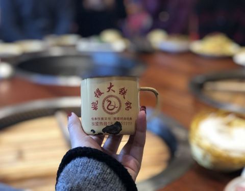 公司团建来这里,还没进门就感受到浓浓的东北味。进门就是炕,装饰都是大红大绿,大花小花的。吃的都是炖菜,我们20个人,三个锅,一个酸菜猪肉炖粉条,一个大鹅,一个大骨头。这铁锅比脸盆还大,三个锅根本吃不完。 喝水用的茶缸还是敲掉瓷的,好有年代感。