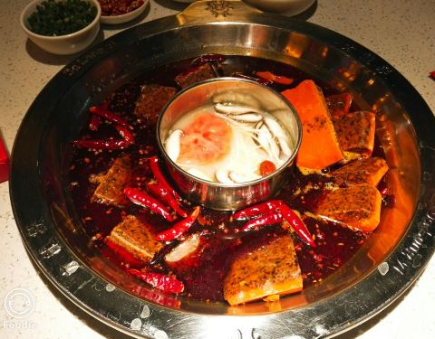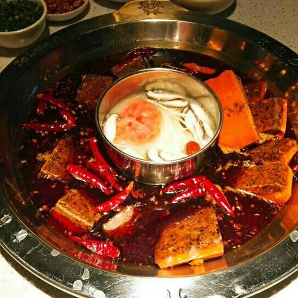 闺蜜成都回来一直说好吃好吃,去不了成都,就来这里过过瘾吧。晚上6点多过来还有位子,点了锅中锅,外面要了中辣…调料干碟香油都取了,火锅标配嘛! 火锅必点的毛肚,千层肚,鸭肠,黄喉,鸭血是麻辣火锅的必备...