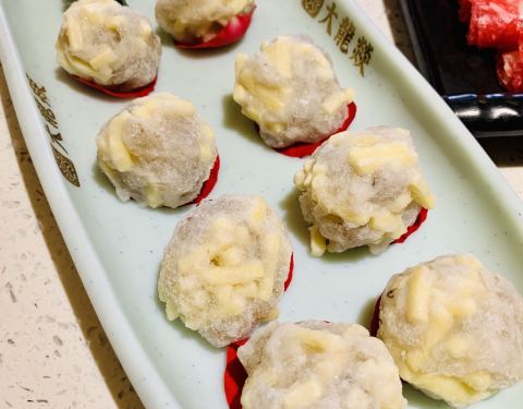 「新西兰芝士虾滑」虾滑配芝士,口感很特别,拉丝效果明显,芝士味浓郁,虾肉吃着也蛮Q弹!特别疫情期