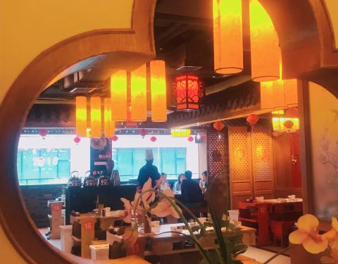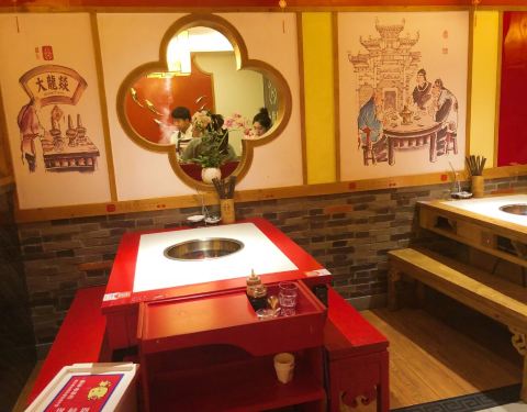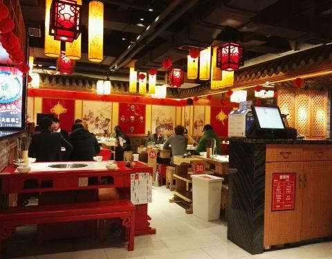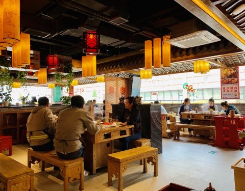 盘龙墙面大气磅礴,川味火锅辣而不燥。